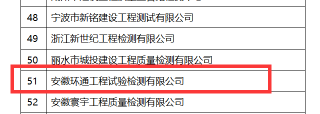 近日,中國建筑業(yè)協(xié)會公布了2023年度建筑業(yè)AAA級信用企業(yè)(檢測機構(gòu))名單,安徽環(huán)通工程試驗檢測有限公司榜上有名。