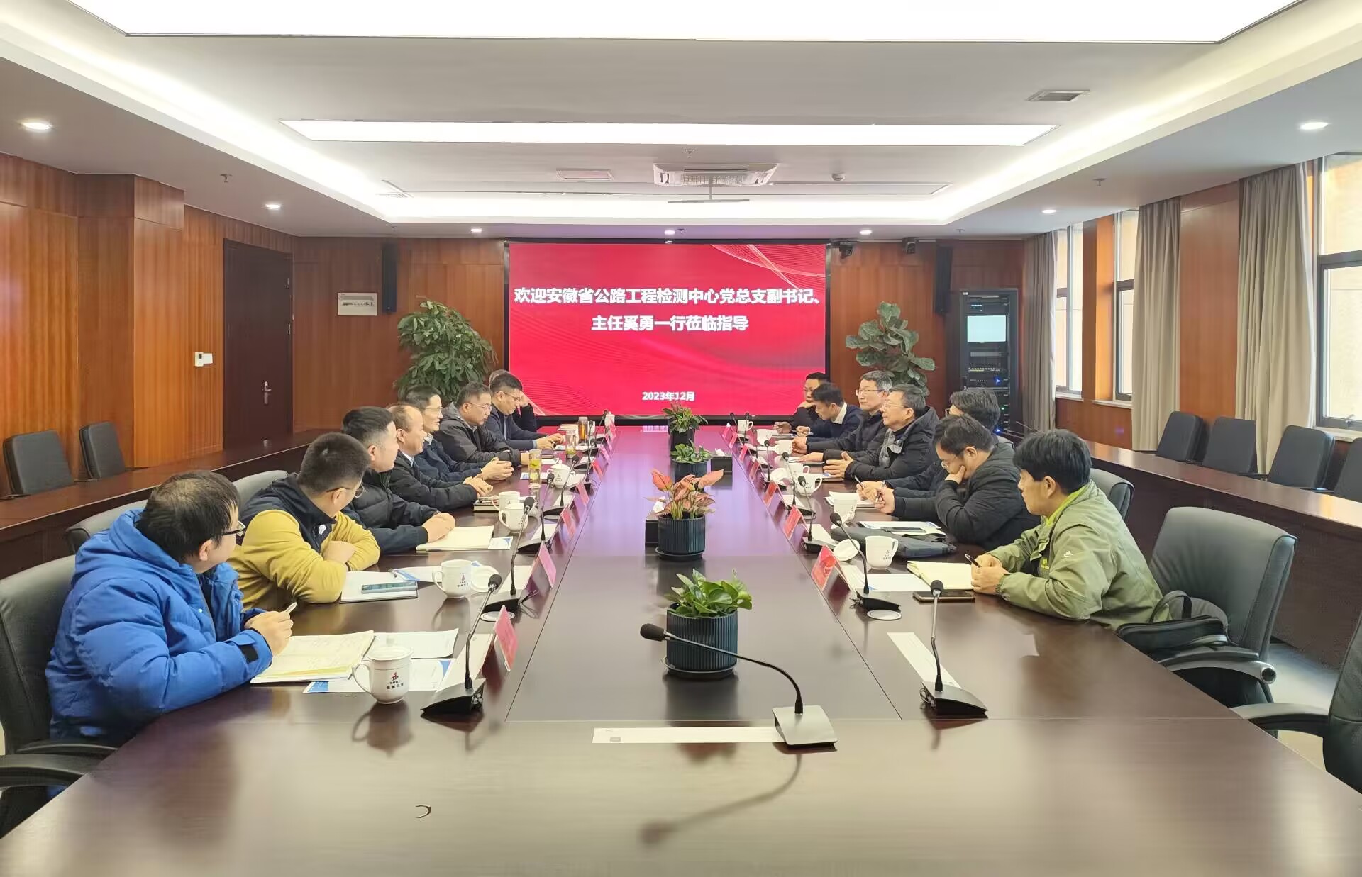 安徽省公路工程檢測中心黨總支副書記、主任奚勇一行到訪建工檢測座談調研