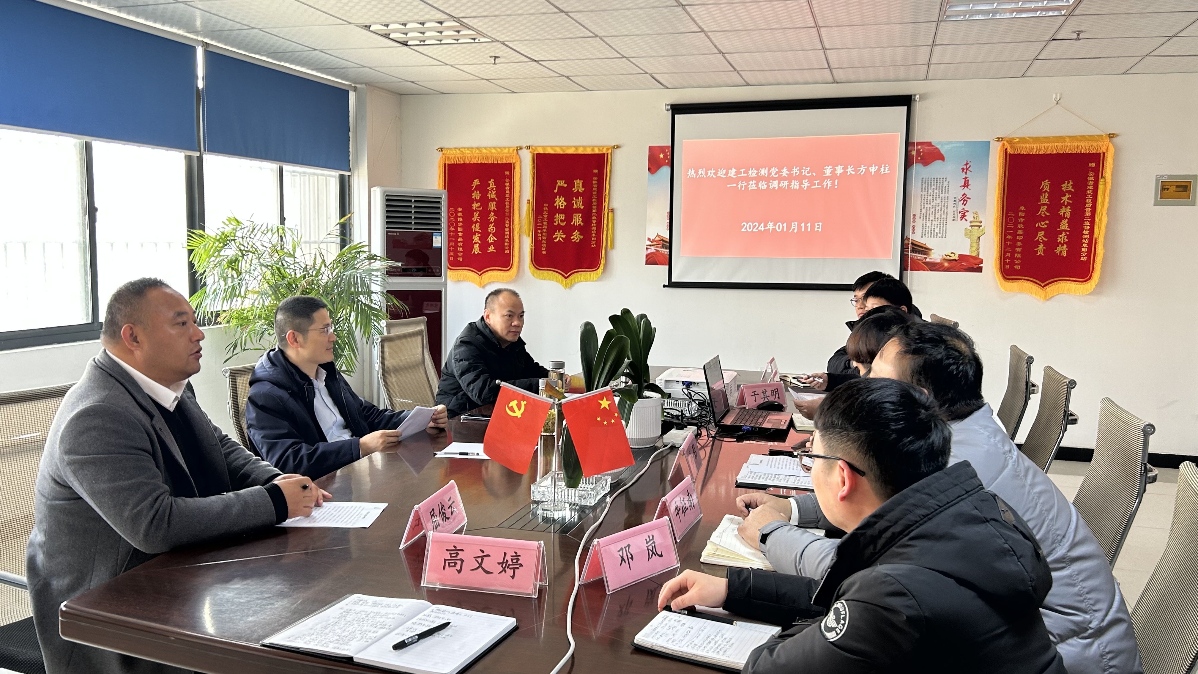 2024年1月11日上午,建工檢測黨委書記、董事長方申柱一行赴建工檢測阜陽分站調研指導工作。