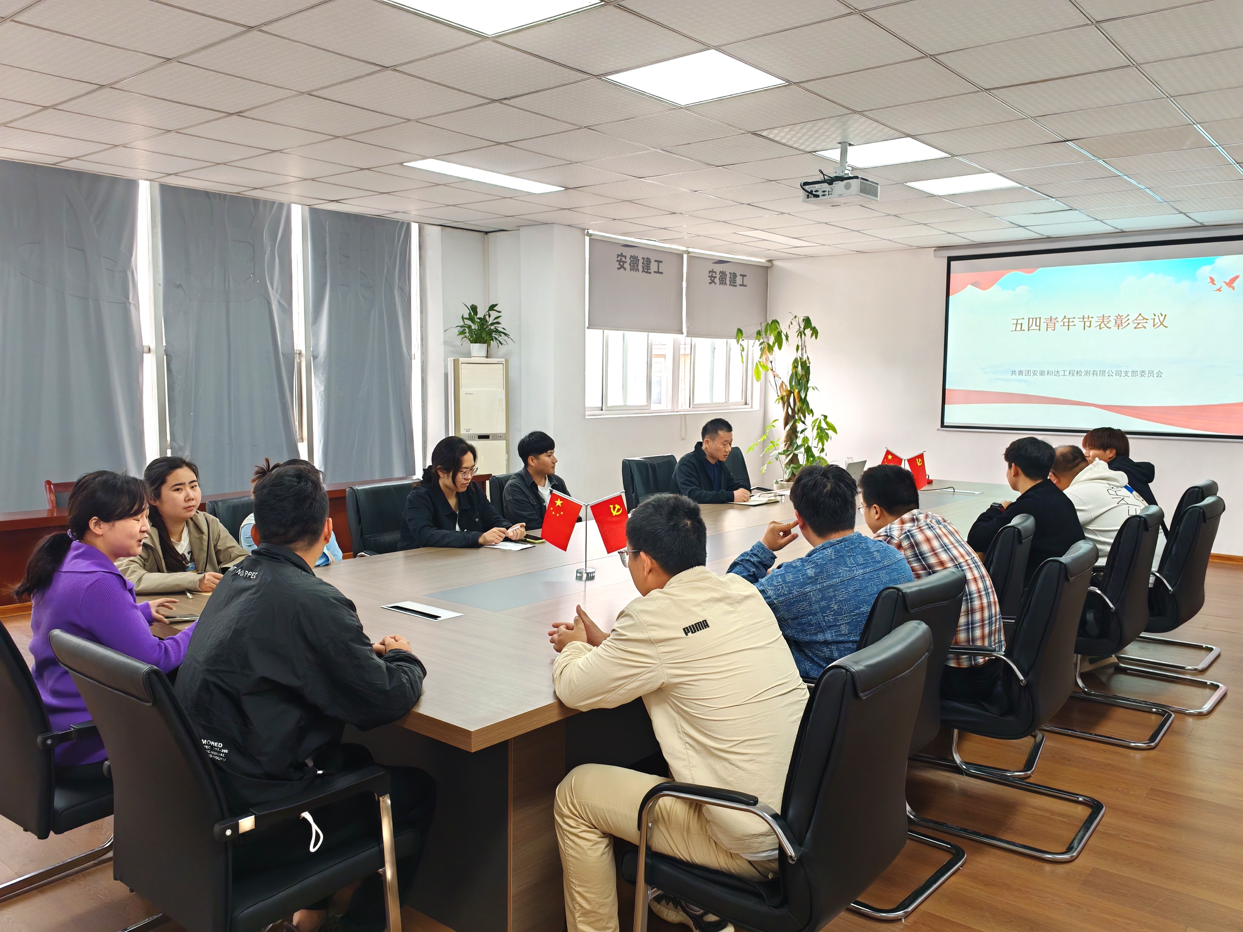 為慶祝2024年“五一勞動節”、“五四青年節”的來臨,和達檢測團支部組織開展“青春心向黨 筑夢新征程”主題團日活動?;顒臃譃槲逅谋碚脮h和衛生大掃除兩階段開展,來自機關部門、事業部、在蚌工地試驗室共計20余名團員參加。