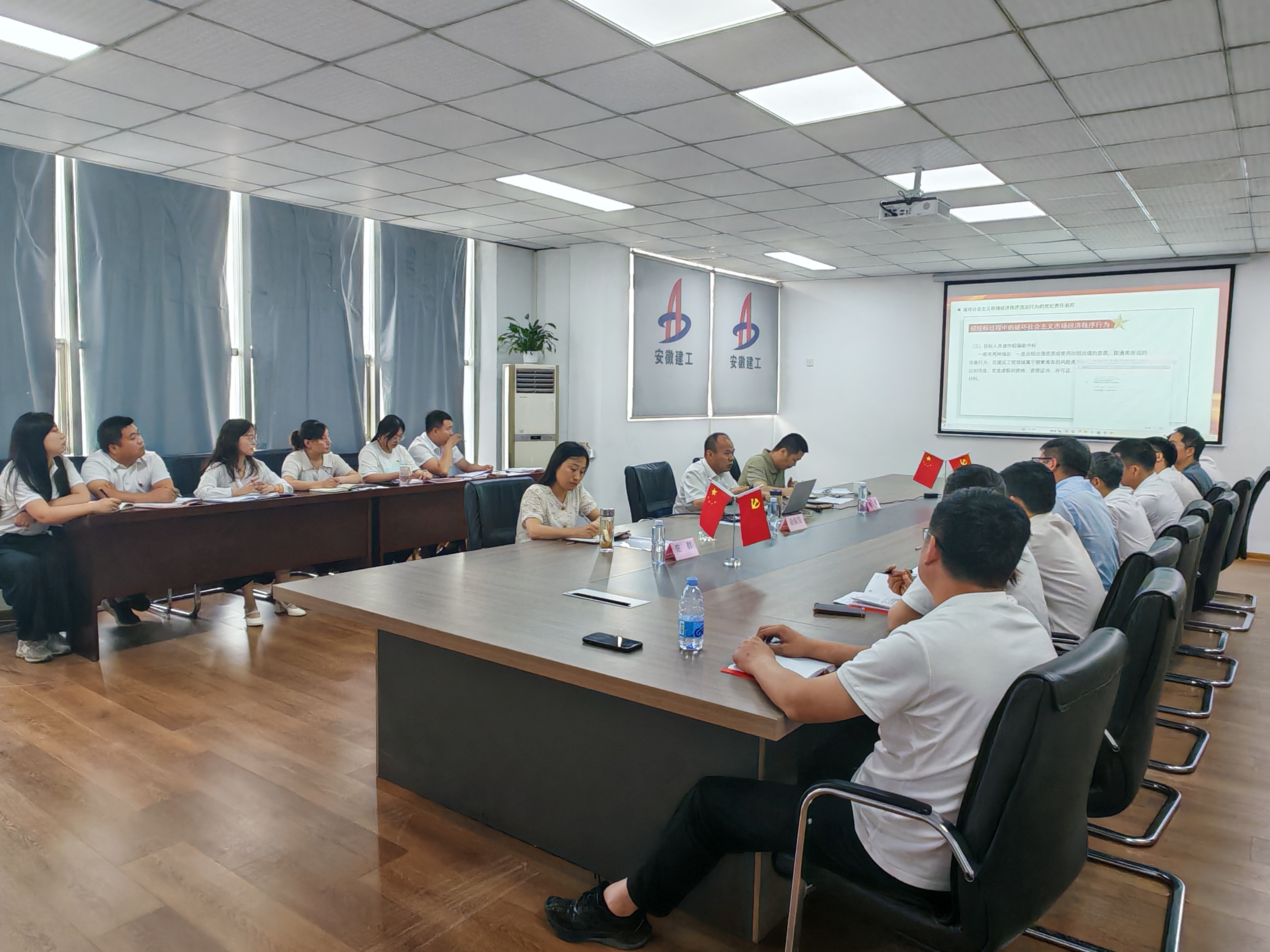 為加強黨紀學習教育,筑牢黨員干部廉潔從業思想堤壩,6月28日上午,建工檢測黨委委員、副總經理俞振發帶隊赴和達檢測公司講授黨紀學習教育專題黨課。