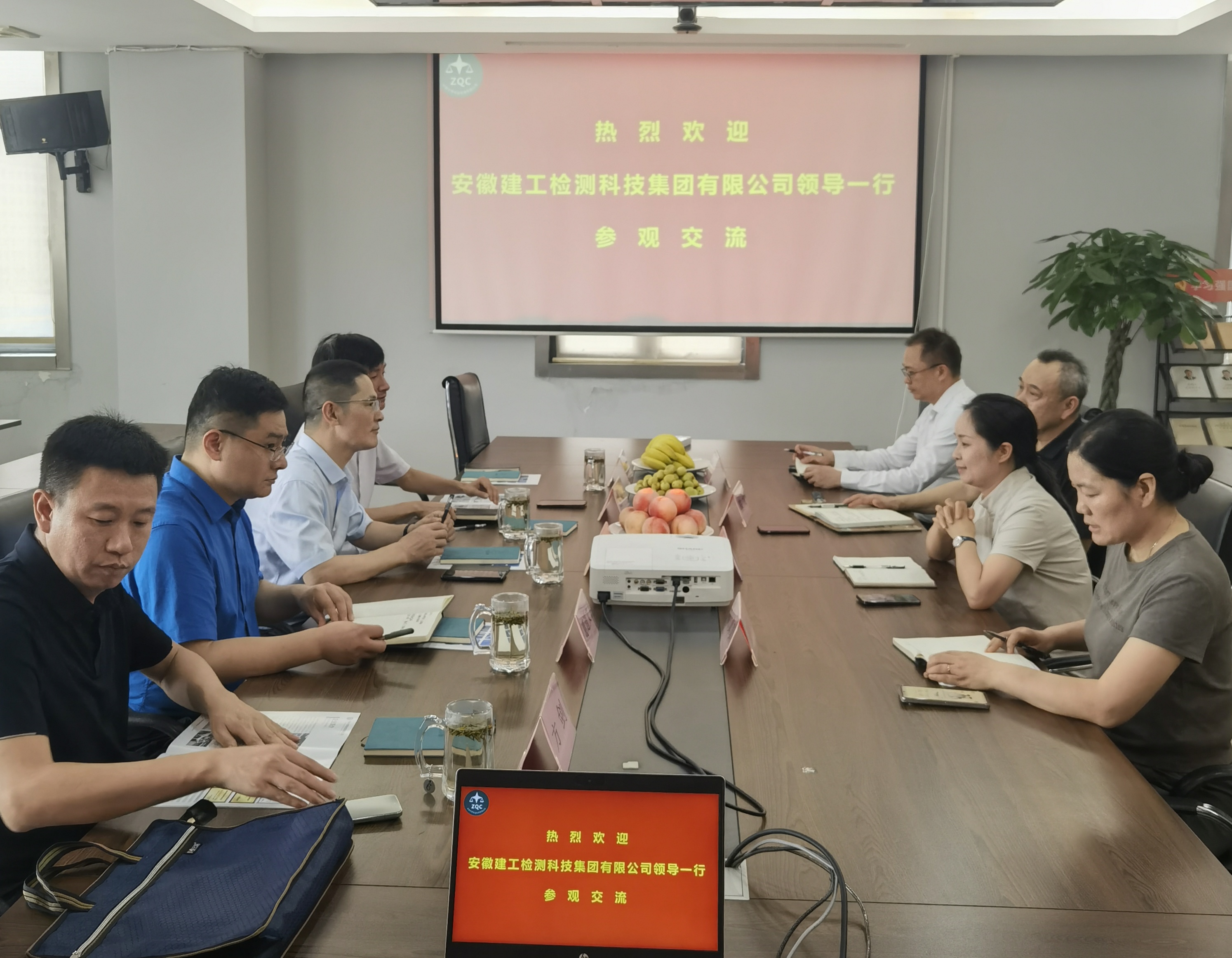 中青檢測(cè)副總經(jīng)理陳戈,建工檢測(cè)財(cái)務(wù)總監(jiān)趙峰,黨委委員、副總經(jīng)理、總工程師葛道文,以及雙方相關(guān)檢測(cè)部門(mén)負(fù)責(zé)人參加此次調(diào)研活動(dòng)。