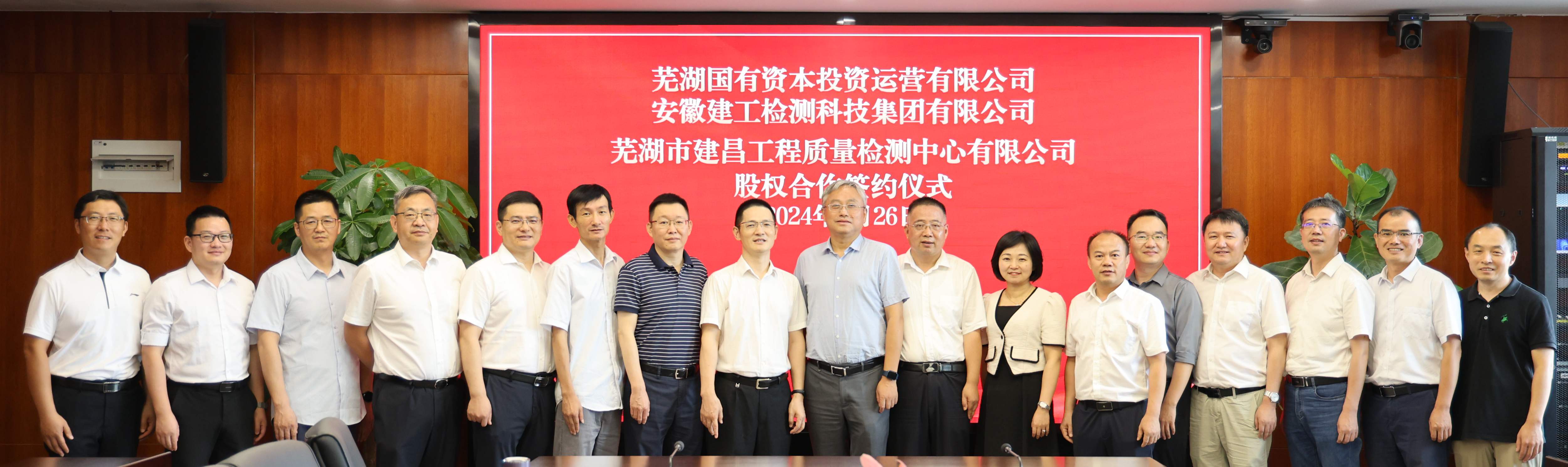7月26日上午,安徽建工檢測科技集團有限公司(以下簡稱“建工檢測”)與蕪湖國有資本投資運營有限公司(以下簡稱“蕪湖國投”)及蕪湖建昌工程質量檢測中心有限公司(以下簡稱“蕪湖建昌”)在建工檢測共同簽署了股權合作協議。