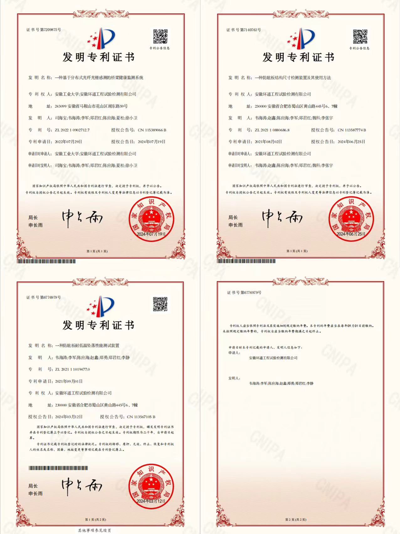 長期以來,環(huán)通公司始終把科技創(chuàng)新視為企業(yè)發(fā)展的核心動力,不斷加大研發(fā)投入,致力于攻克行業(yè)技術(shù)難題,推動產(chǎn)業(yè)升級。今年截至目前,環(huán)通公司共獲得三項(xiàng)國家發(fā)明專利授權(quán),另外兩項(xiàng)分別是自主研發(fā)的《一種防眩板結(jié)構(gòu)尺寸檢測裝置及其使用方法》和《一種防眩板耐低溫墜落性能測試裝置》。
