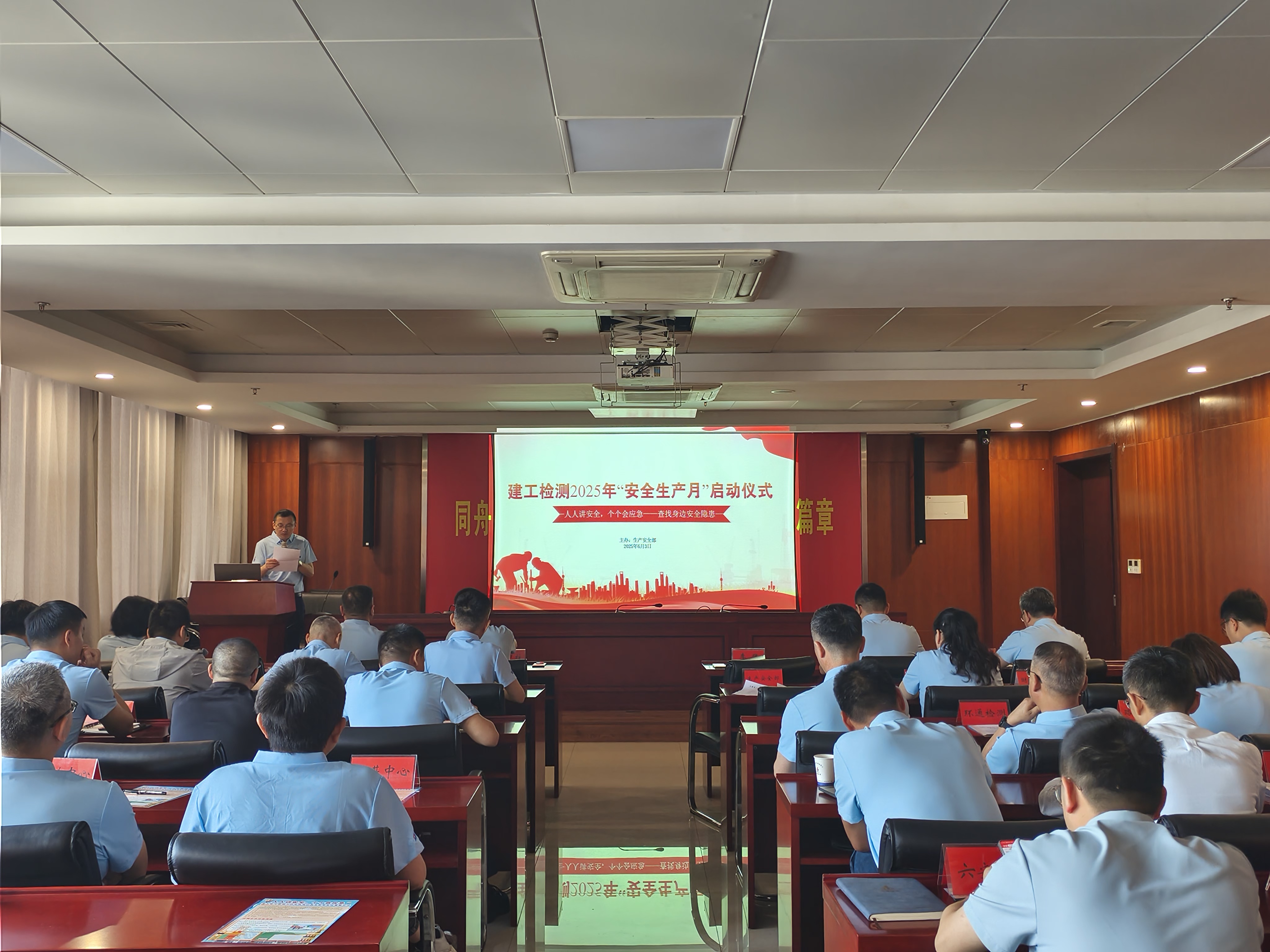 6月3日上午,建工檢測公司舉行2025年“安全生產月”活動啟動儀式,活動主題為“人人講安全、個個會應急——查找身邊安全隱患”,公司黨委書記、董事長方申柱,黨委副書記、總經理李強出席啟動儀式,黨委委員、副總經理、總工程師葛道文,黨委委員、副總經理卞寶林,副總工程師劉林軍參加。