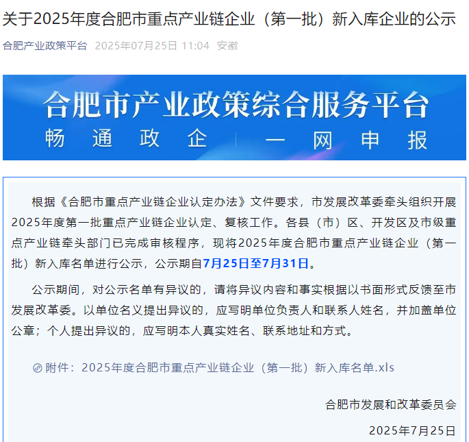 喜報!天筑智檢公司成功入庫2025年度合肥市重點產業鏈企業
