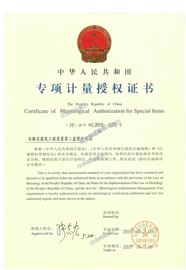 專項(xiàng)計(jì)量授權(quán)證書
