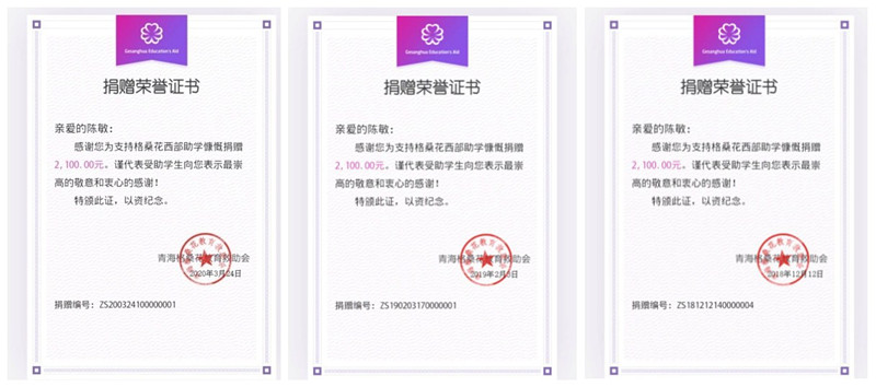 為人民謀幸福是共產黨員的初心。多年來,陳敏同志始終堅守共產黨員初心和使命,心系貧困地區貧困學生,自2018年起,先后多次通過格?;ㄎ鞑恐鷮W公眾號向多杰桌瑪捐款助學金,共計7300元,為扶貧助學貢獻了一份力量。陳敏還通過格桑花志愿者多次轉達對多杰桌瑪的美好祝愿和殷切希望,并鼓勵多杰桌瑪要勇于克服困難,珍惜時間,認真讀書,長大后做個對社會和國家有用的人。