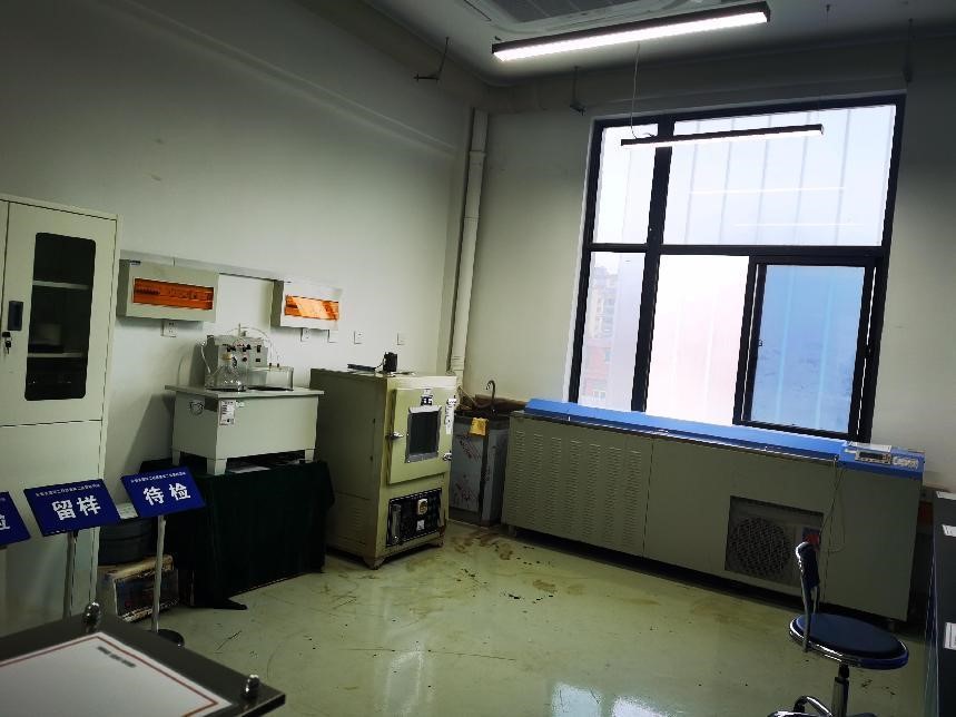 瀝青試驗室主要承擔瀝青針入度、軟化點、延伸度、瀝青薄膜加熱試驗和乳化瀝青蒸發殘留物、微粒離子電荷、儲存穩定性、破乳速度等試驗;主要儀器和設備有數控瀝青針入度儀、電腦瀝青軟化點儀、瀝青低溫延度儀、瀝青旋轉薄膜烘箱、低溫恒溫溢流水箱、克利夫蘭開口閃點儀、乳化瀝青電荷試驗儀、穩定性試驗管等。